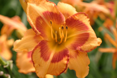 Sure to give an eyecatching burst of highlight colour to any border and always one of the most prominent varieties here, this sherbet orange Daylily has a red eye and edge to each well formed bloom. Has won two awards from the American Daylily Society and often considered one of the best and most popular of the 'eyed' cultivars.