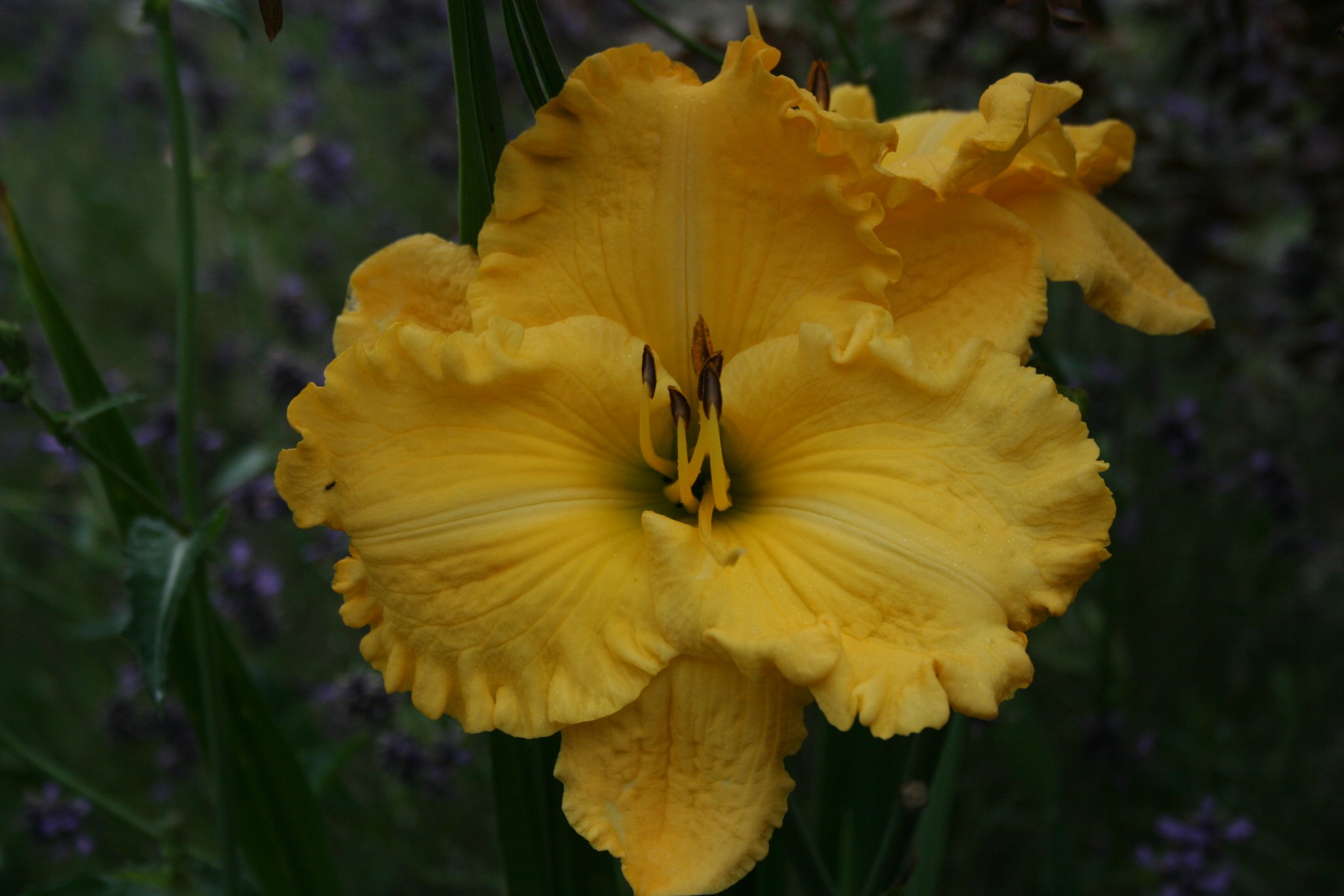 Approaches the peak of perfection in modern form for Daylilies. Dinner-plate like flat opening pleated ruffled clear yellow with creamy midribs, fragrant, and possessing sheer poise which is almost unmatched. Award of Merit winner in 2003.
